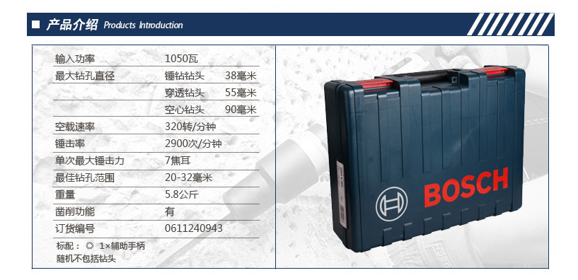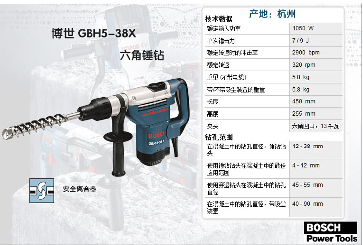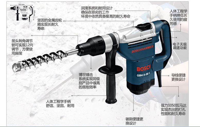 | 博世BOSCH六角电锤5公斤多功能锤钻GBH5-38X (611240943) | |||