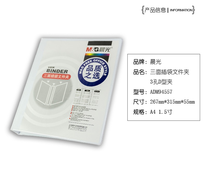 | 晨光ADM94557 3孔D型三面插袋文件夹快劳夹1.5寸 |