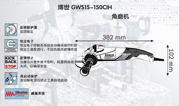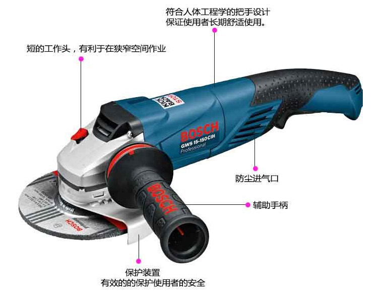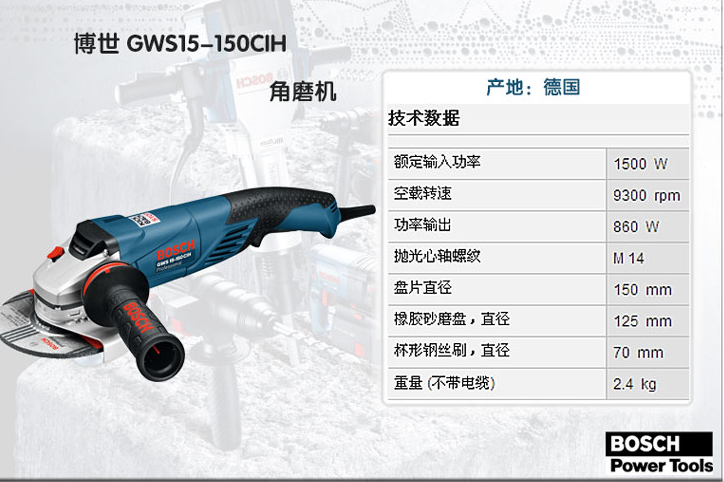 | 博世角向磨光机切割机BOSCH电动工具角磨机GWS15-150CIH打磨机 (601830582) | |||