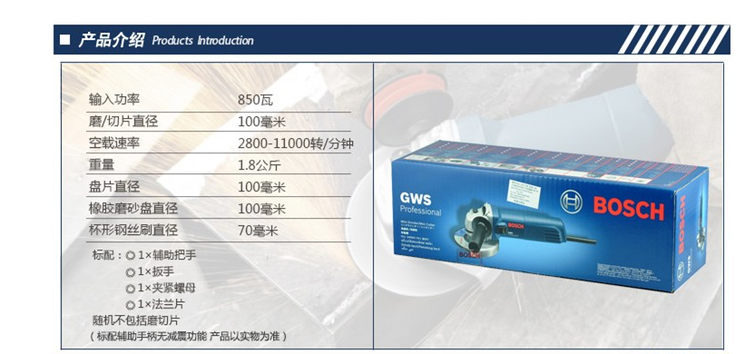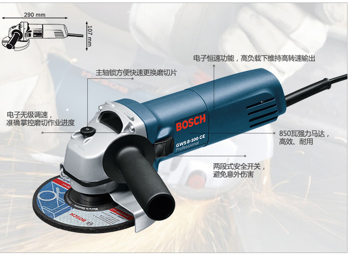 >> 博世BOSCH角磨机GWS8-100CE电动调速角向磨光打磨切割机(601378643)