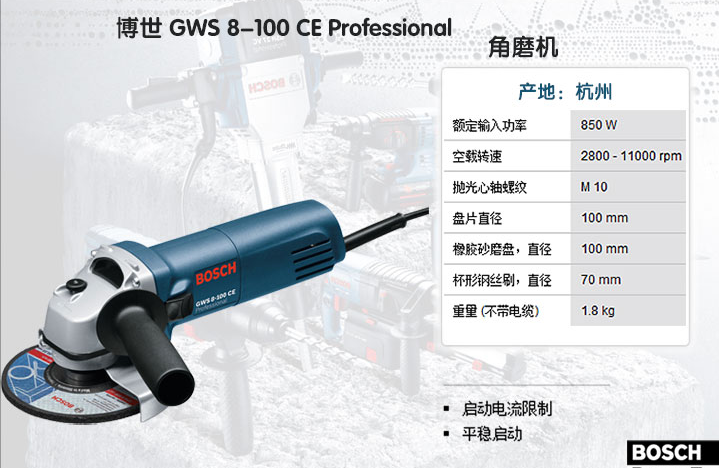 | 博世BOSCH角磨机GWS8-100CE电动调速角向磨光打磨切割机(601378643) |