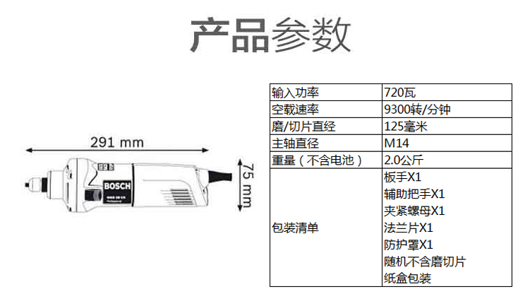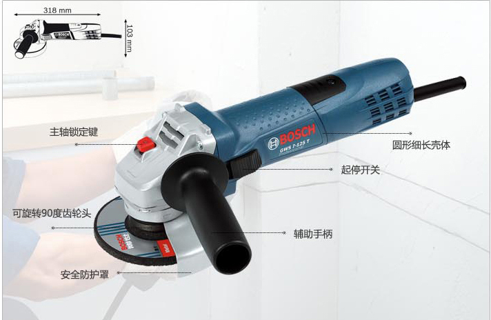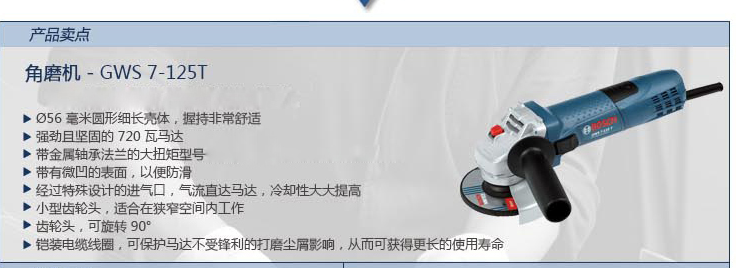 | 博世BOSCH电动工具GWS7-125T角磨机720瓦功率切割打磨角磨机(601388682) |