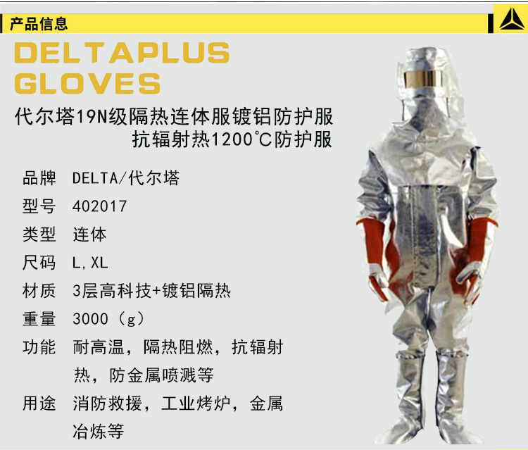 | 代尔塔防护服 防喷溅隔热服防火服耐磨消防救援服连体服阻燃402017 |