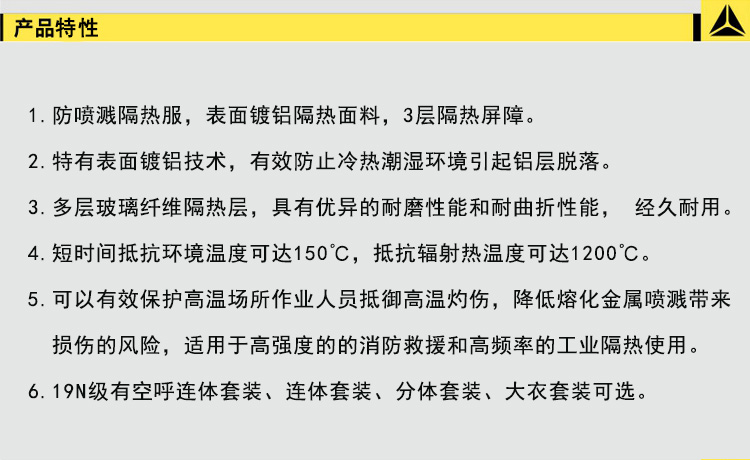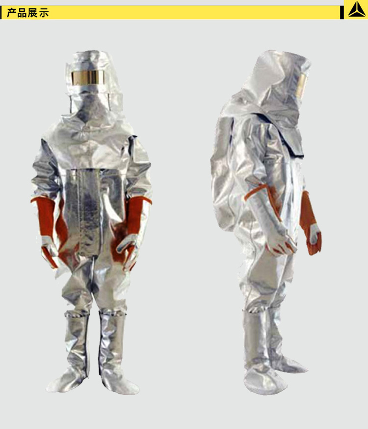 1、防喷溅隔热服,表面镀铝隔热面料,3层隔热屏障