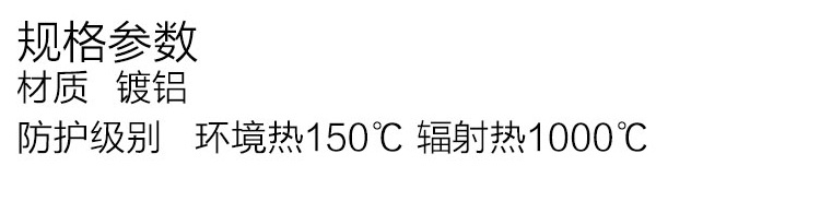 1、防喷溅隔热服,表面镀铝隔热面料,3层隔热屏障