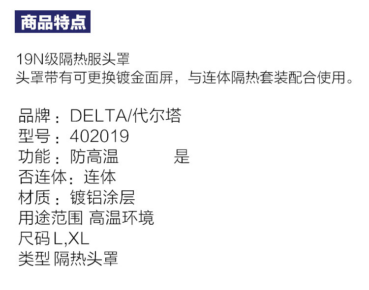| 代尔塔隔热头罩银色劳保建筑工地安防工地/402019 |