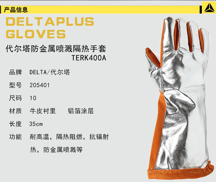 | 代尔塔 隔热镀铝焊工特种手套防金属溅射防传导热辐射热/205401 |