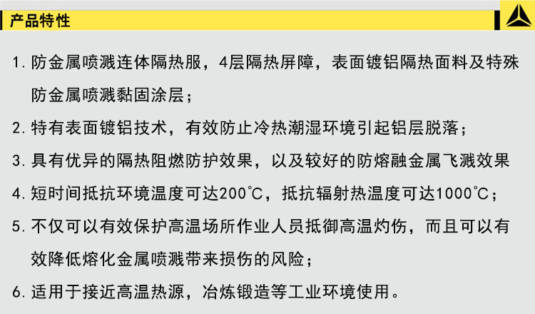 1、防金属喷溅连体隔热服,4层隔热保障