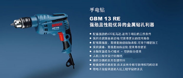 | 博世(Bosch) GBM13RE 13毫米正反转电子调速手电钻(601477584) |