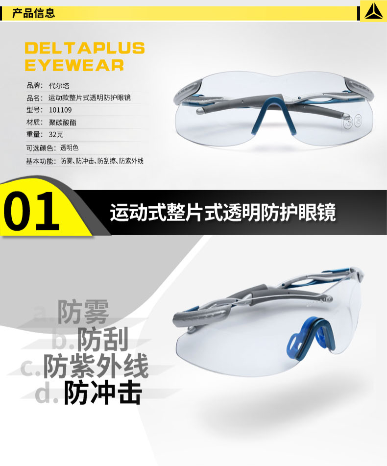 | 代尔塔 护目镜运动骑行透明防护眼镜防雾防风防刮擦/101109 |