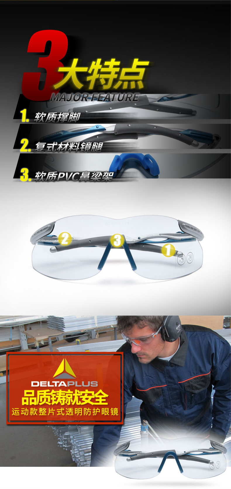 2、PVC鼻梁架,不受压迫,佩戴舒适