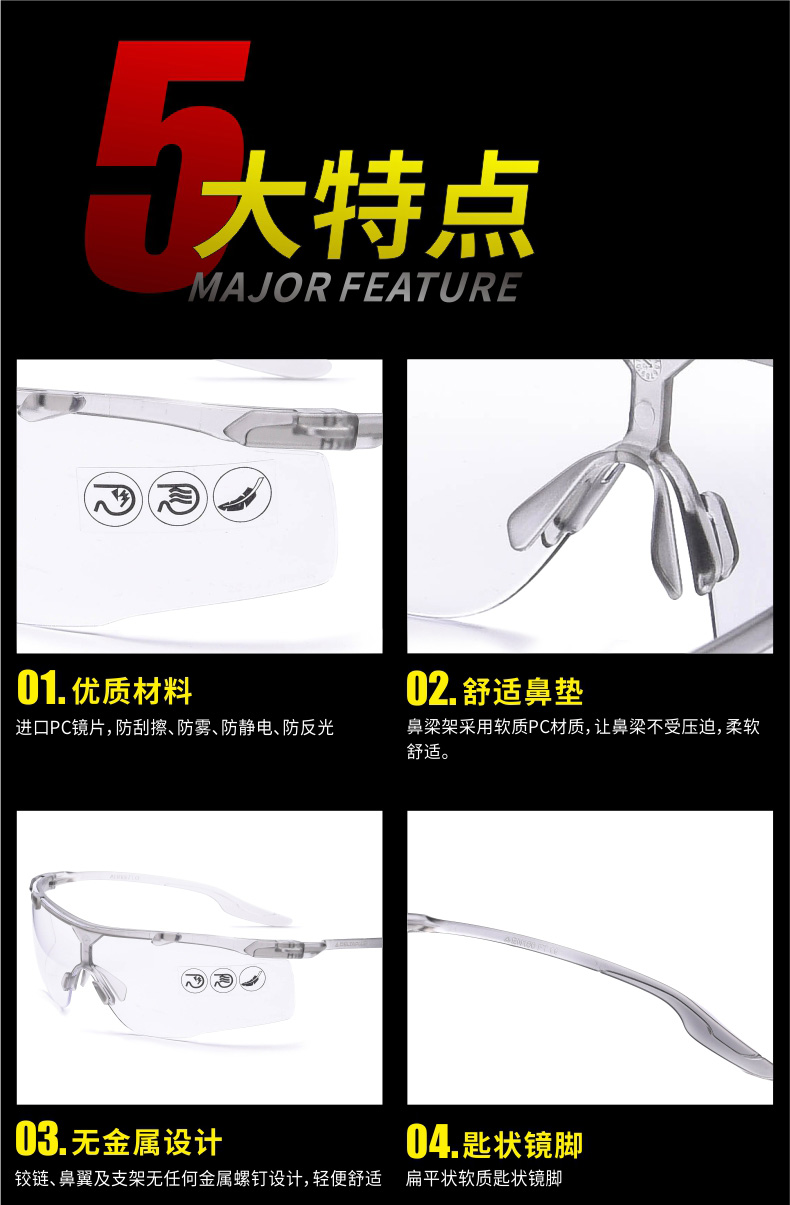 超轻安全眼镜透明防雾
