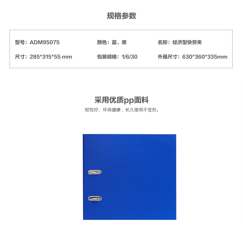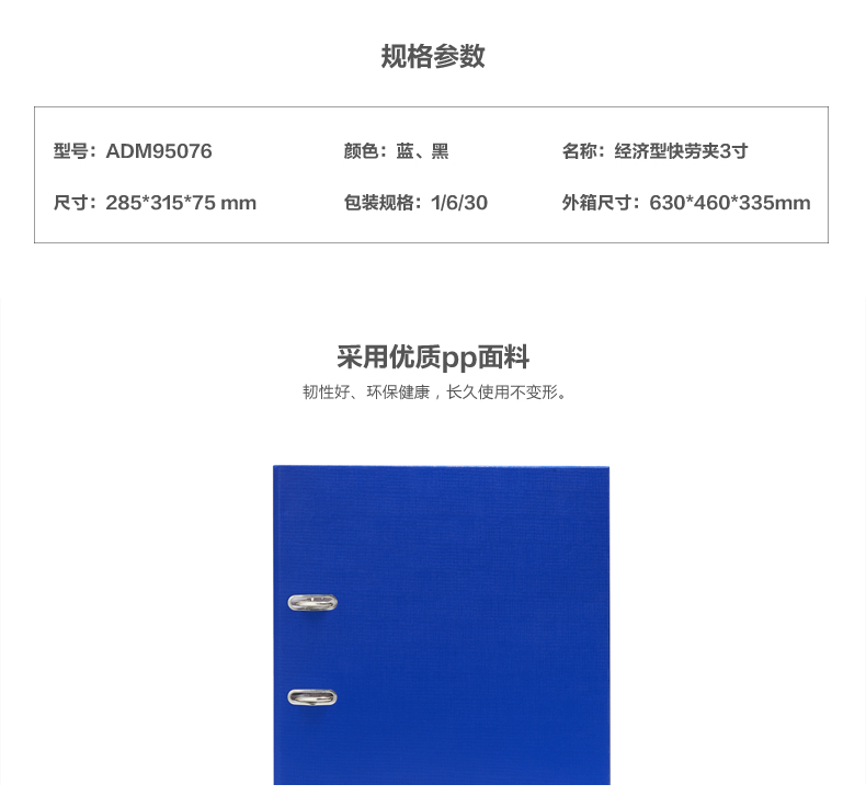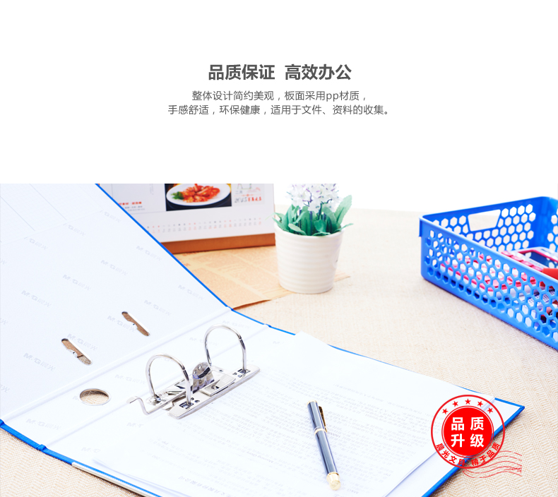 整体设计简约美观,版面采用PP材料,手感舒适,环保健康,适用于文件、资料的收集