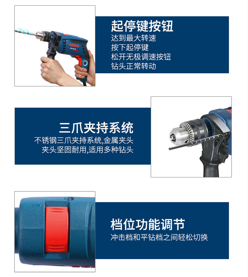 GSB600RE套装冲击钻 家用多功能两用电钻正反转调速 全滚珠轴承结构经久耐用,冲击和钻孔末世之间轻松转换,正反转功能使用于拧紧螺丝。 |