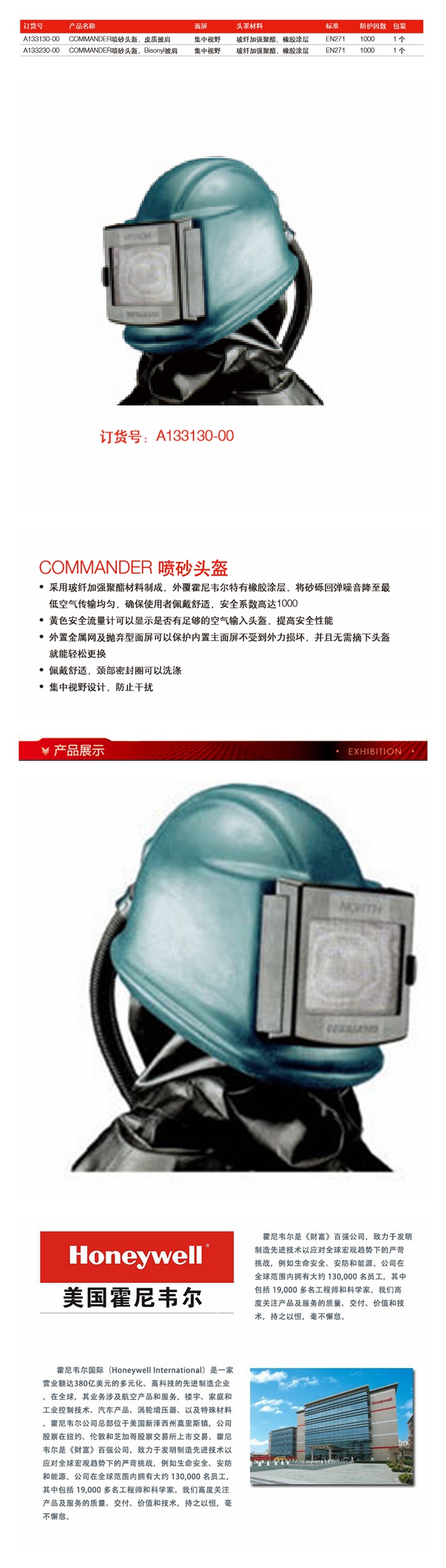 | 霍尼韦尔A133230-00/A133130-00 COMMANDER 喷砂头盔 | |||