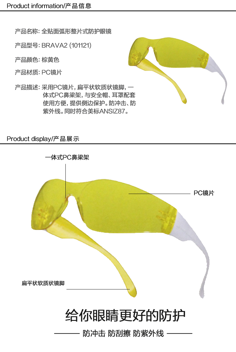 | 代尔塔 护目镜劳保防冲击刮擦紫外线全贴面弧形黄色增亮眼镜/101121 |