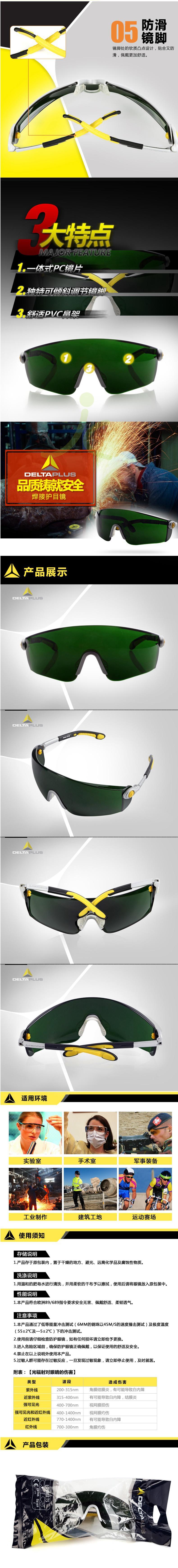 | 代尔塔 护目眼镜骑车太阳焊接气焊工紫外线电焊墨绿防护眼镜/101012 |
