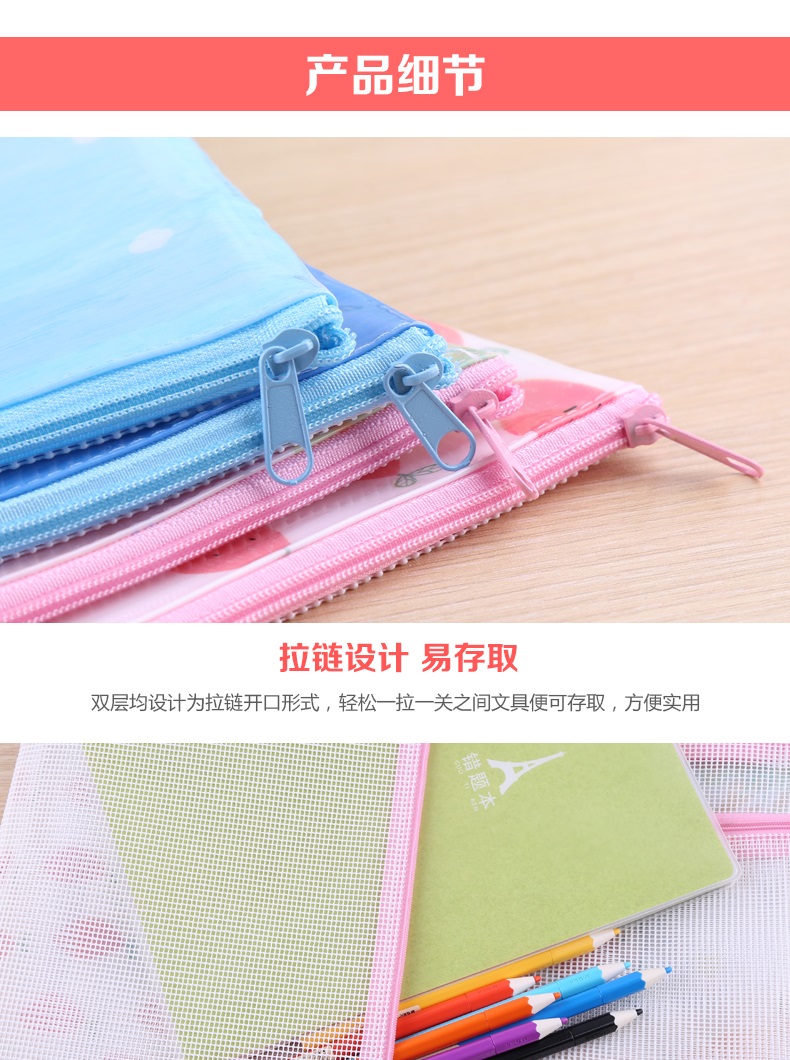整体设计简约耐用,柔韧性强,健康环保、手感舒适,适用于文具的收集