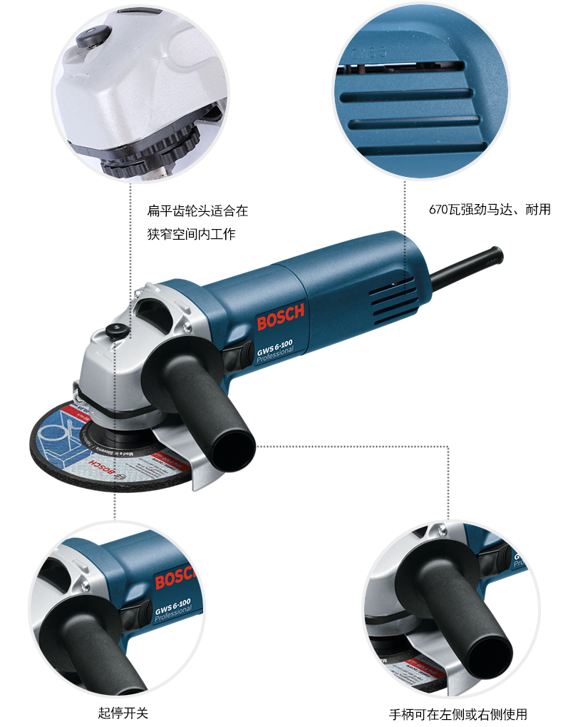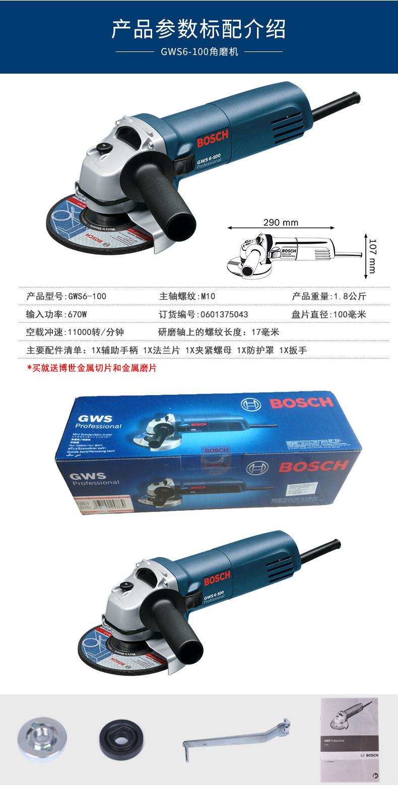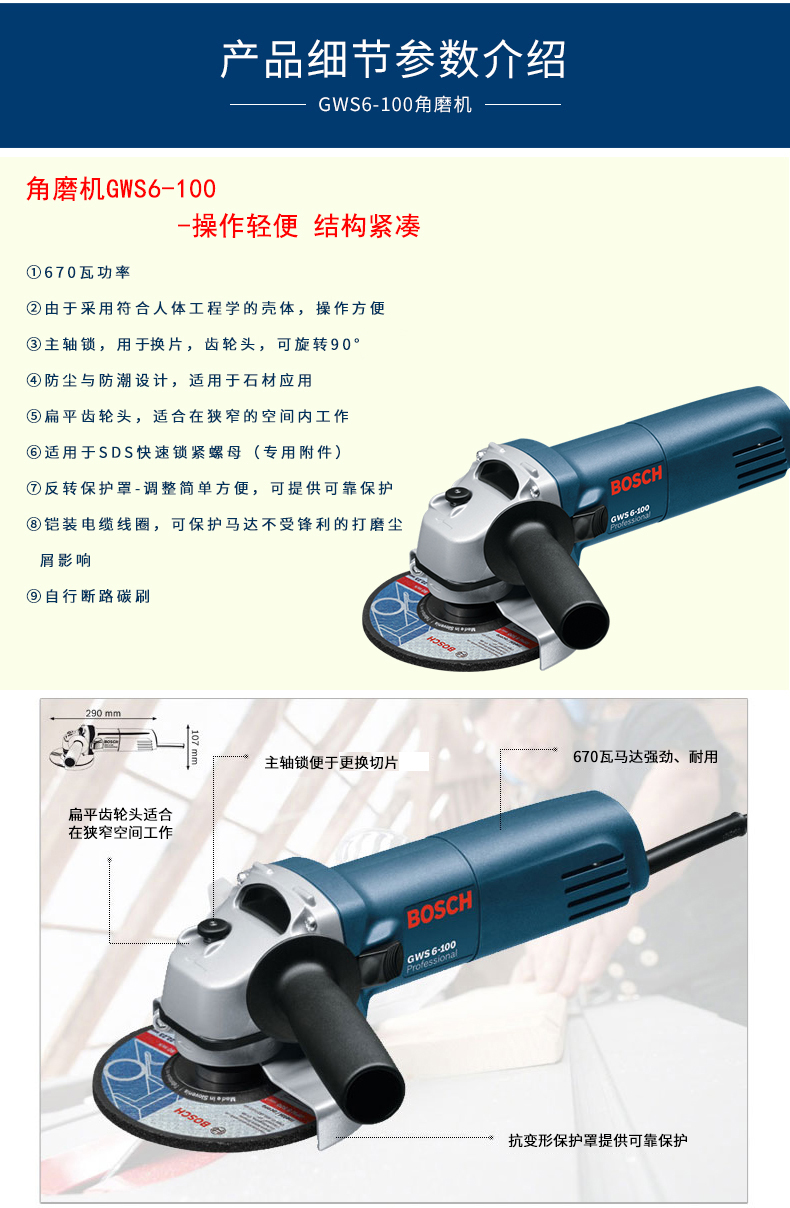 | 博世(Bosch)工业级角磨机 大功率打磨抛光切割机 电动磨光手磨机GWS6-100(601375043) | |||