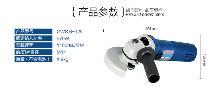 | 博世(BOSCH)电动工具 GWS6-125 125mm角磨机 打磨机 瓷砖切割机 木材电锯(601375143) | |||