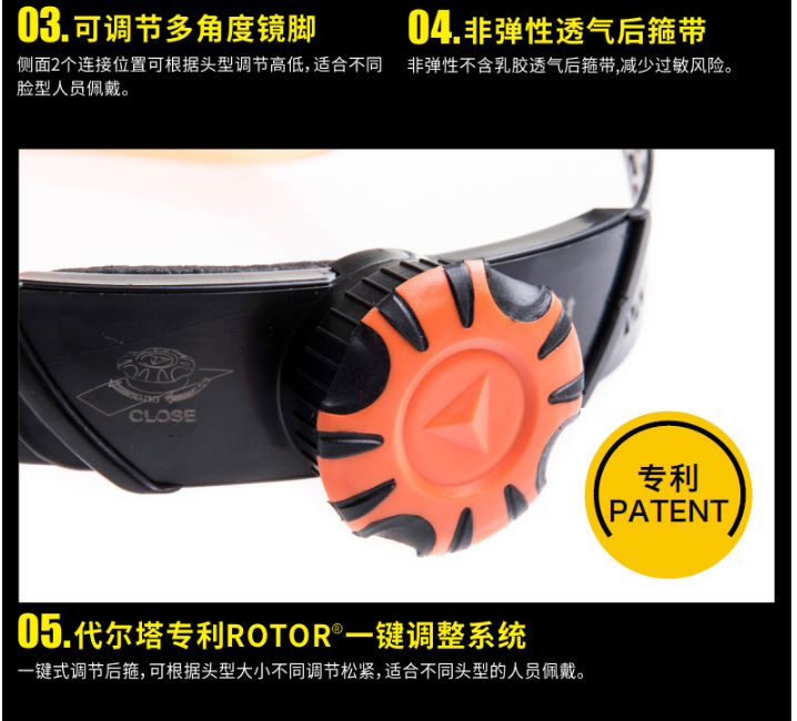 3、代尔塔专利一键式调节后箍,适合不同头型人员佩戴