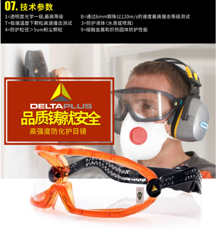 | 代尔塔 防雾 防刮擦防紫外线防化护目镜/101157 |