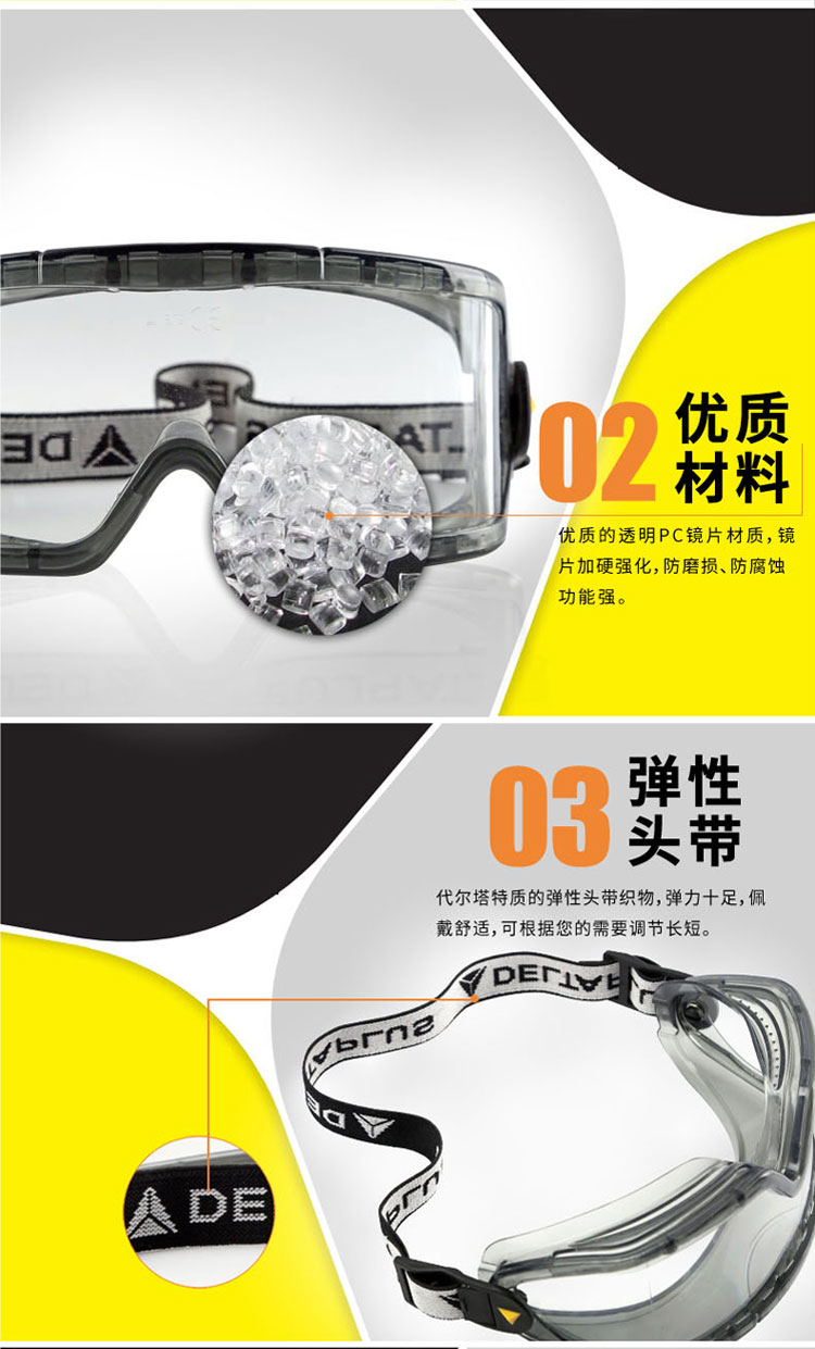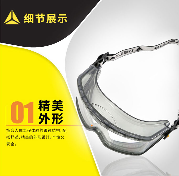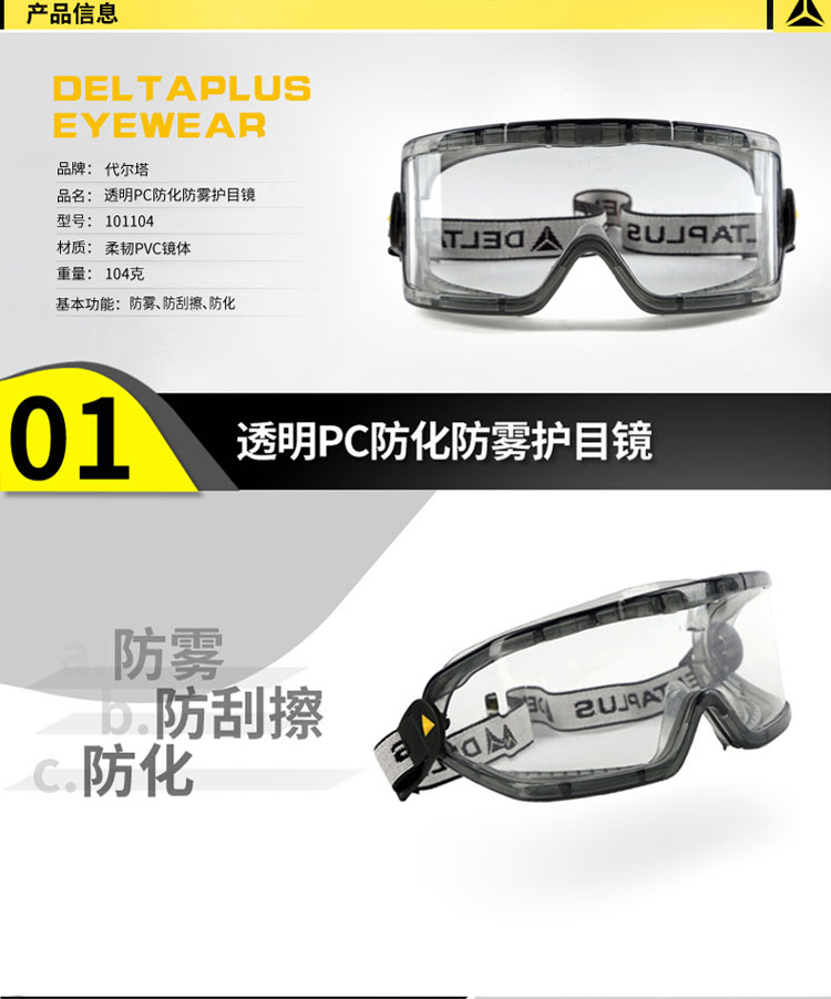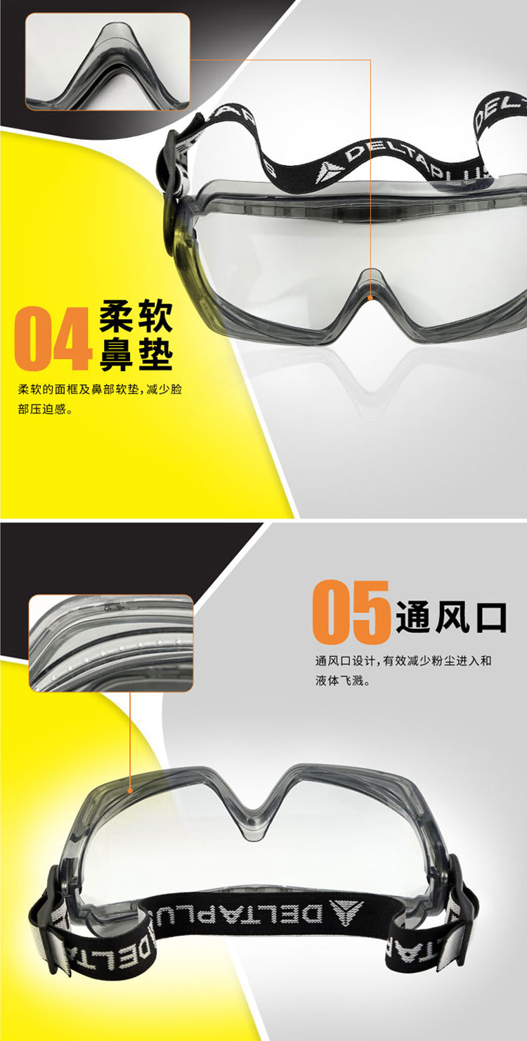| 代尔塔护目镜101104 PC镜片透明防护眼镜 防雾防喷溅防刮擦眼镜 |