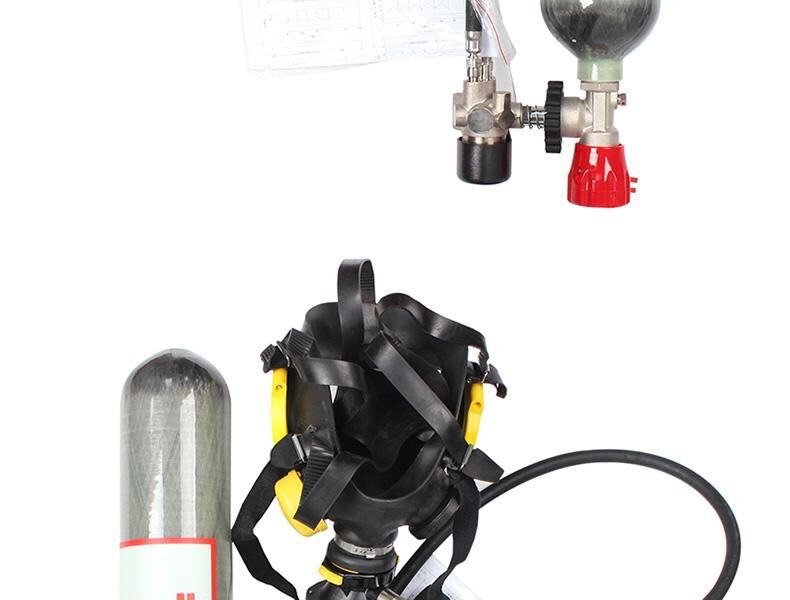 消防指挥员型空气呼吸器 (挎包式),恒流式逃生空气呼吸器,带有1个2升300Pa带压力表气瓶,可使用约15分钟 |