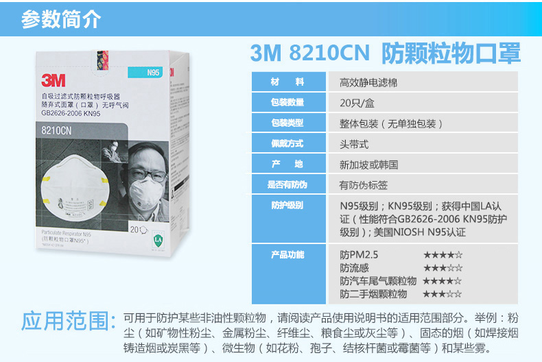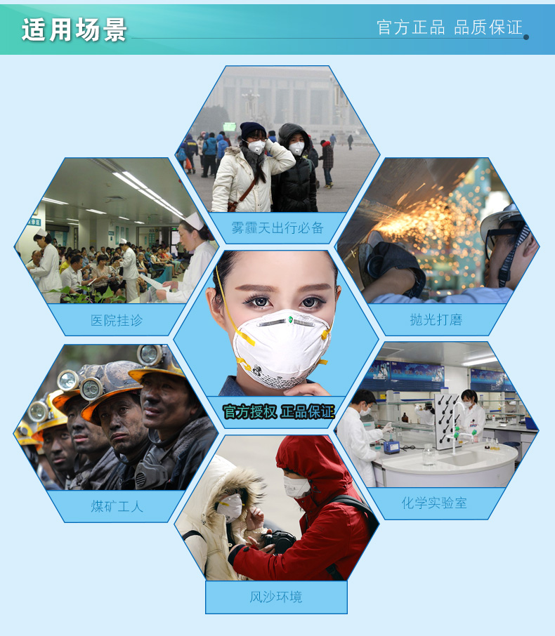 用于建筑、矿山、铸造、木加工、电子、制药、物料处理及打磨等作业时产生的颗粒物的防护。 |