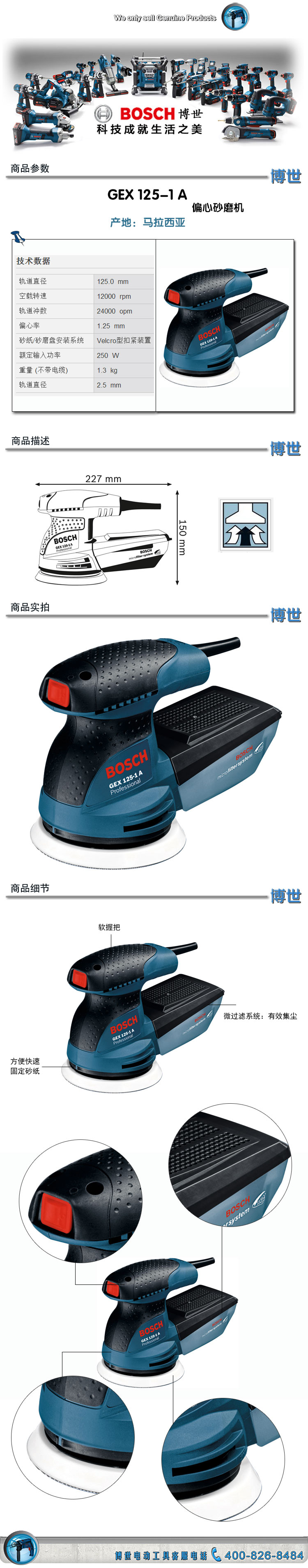 | 博世BOSCH 偏心砂磨机GEX125-1A砂纸机打磨机抛光机(601387080) | |||