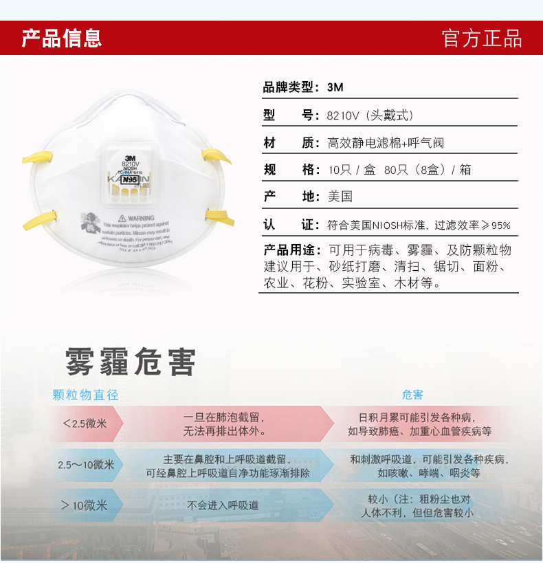 | 3M防颗粒物口罩8210V 防雾霾PM2.5 带呼气阀透气 工业防尘 | |||