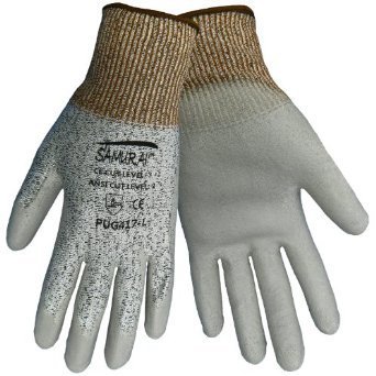 PUG417是麻灰色HPPE浸灰色PU,EN388防切割3级,美国标准ASTMF-1790 二级,658克。
