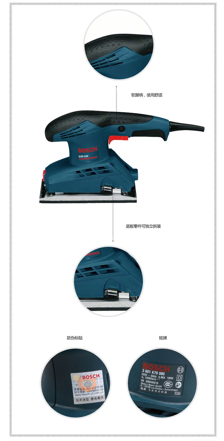 | 博世BOSCH电动工具GSS230平板砂磨机 输入功率190W(601070080) | |||