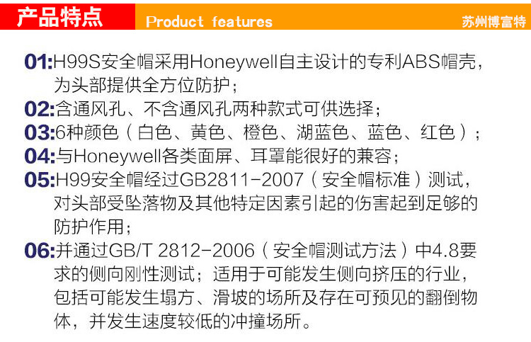 Honeywell独有的三重防护ABS帽壳设计(专利 号:201130249080.1),提供卓越的冲击防护性能,
