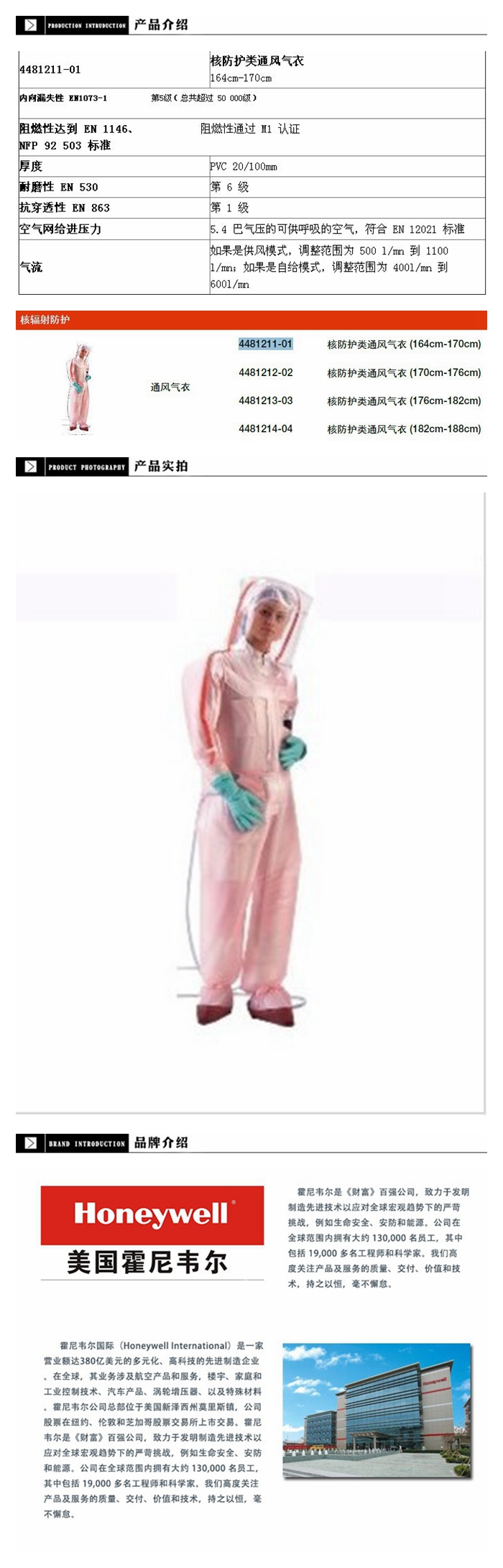| 霍尼韦尔4481211/4481212/4481213/4481214 核防护类通风气衣核防护服 | |||
