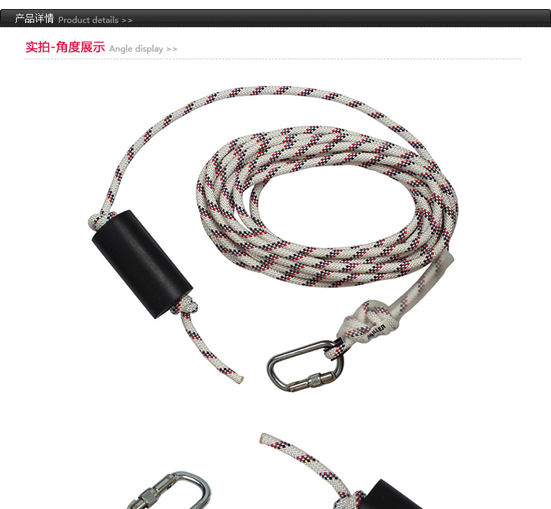 10.5mm 低伸缩安全绳,配有1 个安全钩和1个重锤 |