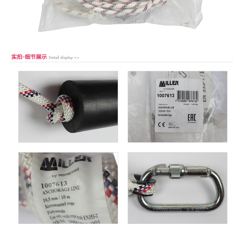 | 霍尼韦尔1007613/4/5/6/7 身体防护防坠落高空作业尼龙安全绳10.5mm 低伸缩安全绳 | |||