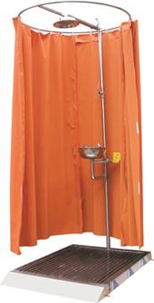 浴帘型不锈钢复合式洗眼器是针对于冲淋器花洒时不能喷溅在地面上的环境而设计,