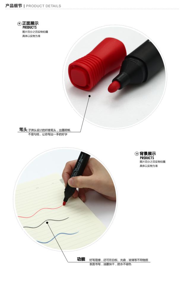 优质PP制成的笔身,高精度合成纤维笔头,书写手感顺滑,适合在陶瓷、白板、玻璃等光滑表面书写,线迹干后易擦除,无痕迹。