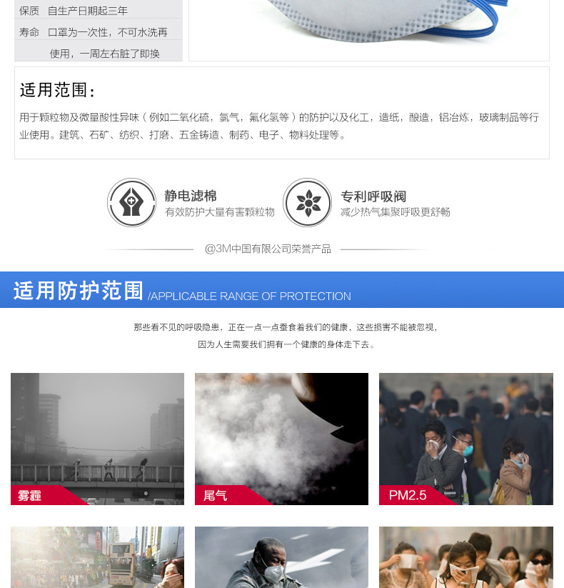 用于颗粒物及酸性气体异味(例如二氧化硫、氯气、氟化氢等)的防护,配有3M专利的冷流呼气阀,适合湿热环境中长时间佩戴。用于化工、造纸、酿造、铝冶炼、玻璃制品等行业。 |