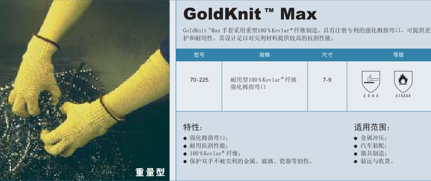 Ansell安思尔70-225:强化拇指弯口,耐用抗割性强,中量型应用手套,适合各种用途,根据亚洲人手设计,更加舒适灵活。 |