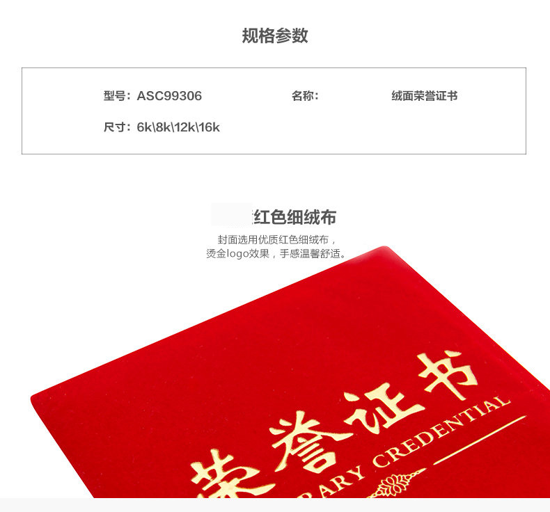 | 晨光尊贤绒面荣誉证书 ASC99306-ASC99309 |