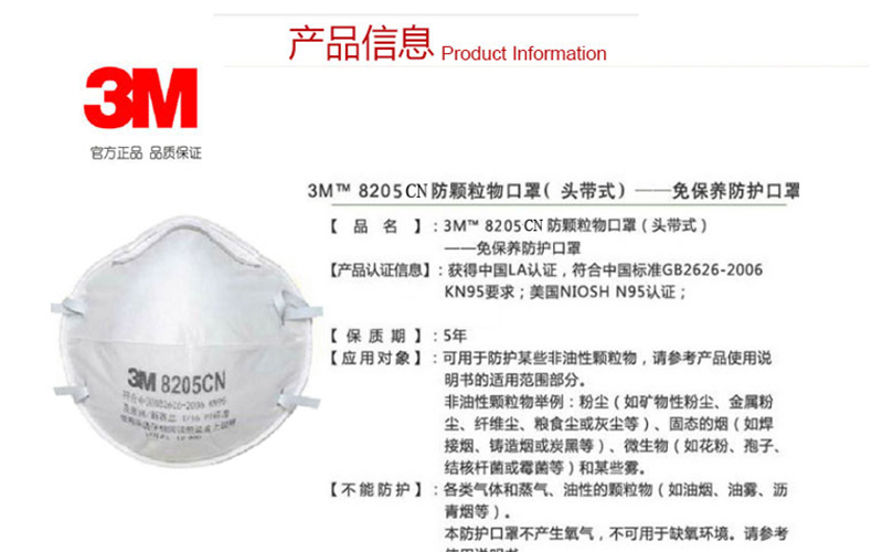 | 3M防颗粒物口罩8205CN 防尘 PM2.5雾霾 | |||
