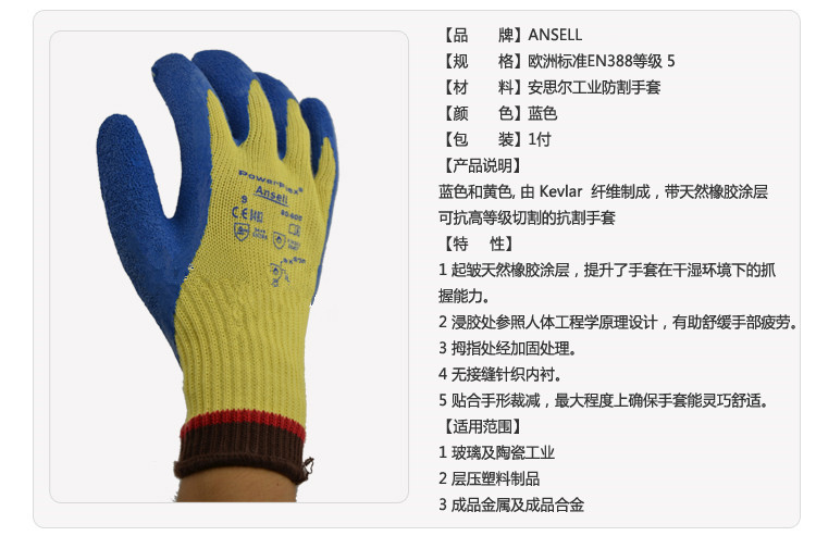 | 安思尔80-600防割手套橡胶涂层耐磨抗割手套防滑防刺穿(80-600) | |||