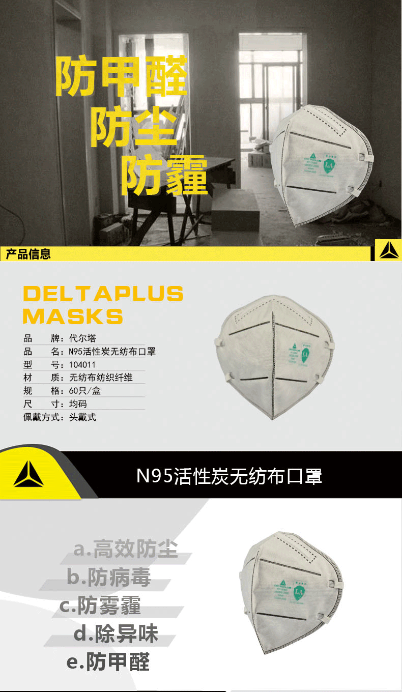 | 代尔塔104011防霾口罩pm2.5活性炭男女通用口罩进口无纺布材质 |