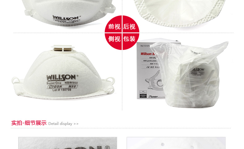 符合美国国家职业安全及健康协会标准(NIOSH)N95认可,(在测试中,隔阻直径0.075微米的微粒)