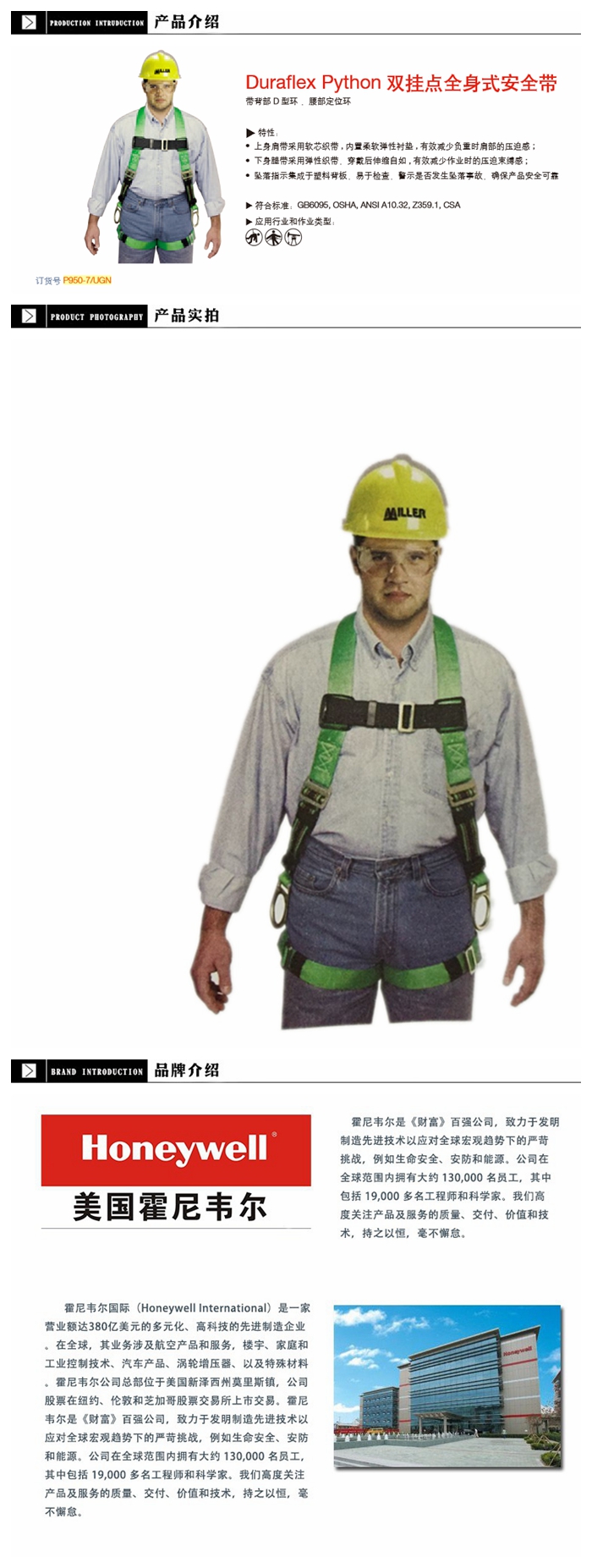 | 霍尼韦尔P950-7/UGN Duraflex Python 双挂点全身式安全带 | |||