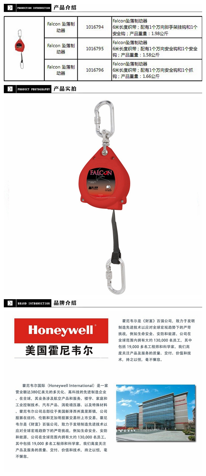 | 霍尼韦尔1016794/1016795/1016796 Falcon 坠落制动器速差器6米长度织带 | |||