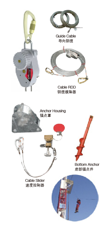 1,26739/K:套装内含带: 一个55米钢缆RG20; 1个锚点外壳; 一个钢缆锚点连接件;两个速度控制器;两个55米导向钢缆;两个导向钢缆安装附件; 两个底部锚点)。