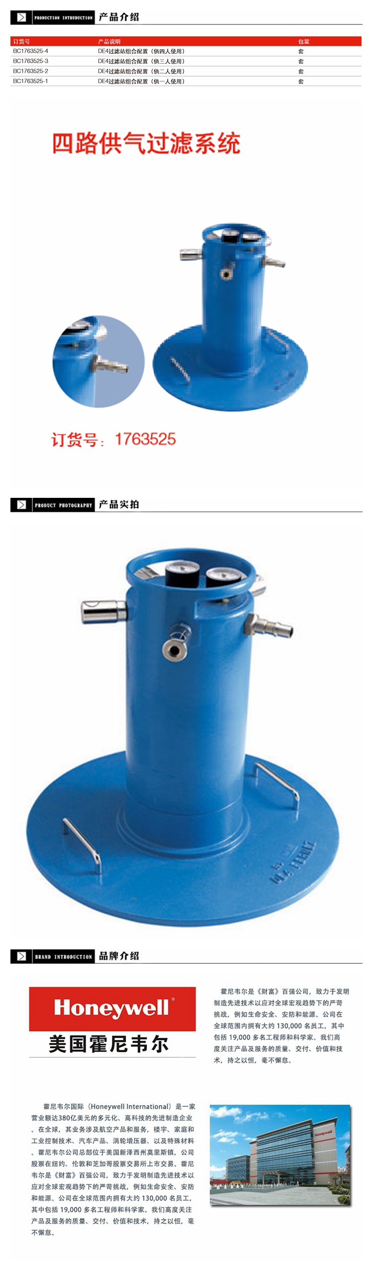 | 霍尼韦尔BC1763525-1/2/3/4 DE4过滤站组合配置 长管空气过滤呼吸器 | |||